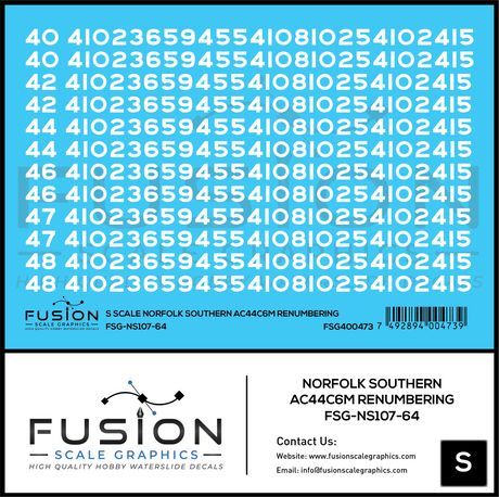 S Scale Norfolk Southern GE AC44C6M Locomotive Renumbering Decal Set