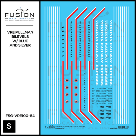 S Scale VRE Virginia Railway Express Blue Top Pullman BiLevel Decal Set