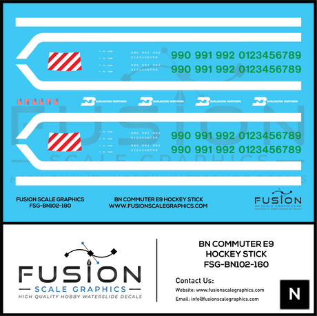 N Scale Burlington Northern Commuter E9 Hockey Stick Locomotive Decal Set