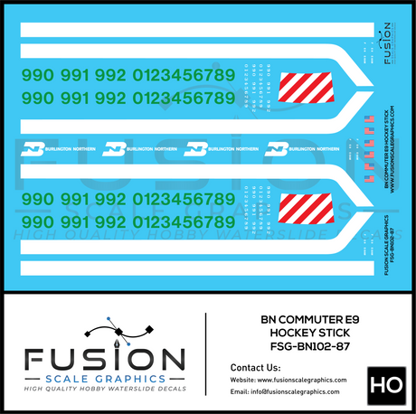 HO Scale Burlington Northern Commuter E9 Hockey Stick Locomotive Decal Set