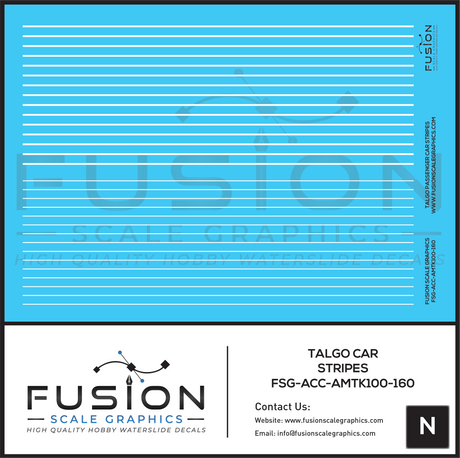 N Scale Talgo Passenger Cars White Striping Decal Set