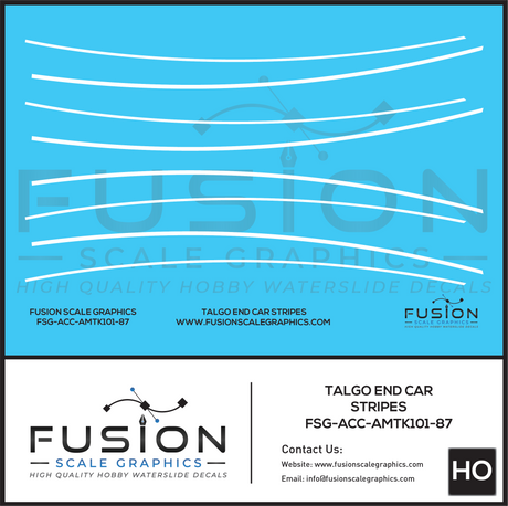 HO Scale Talgo Passenger Cars End White Striping Decal Set