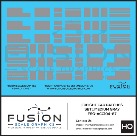 HO Scale Freight Car Patches Set 1 Medium Gray Decal Set