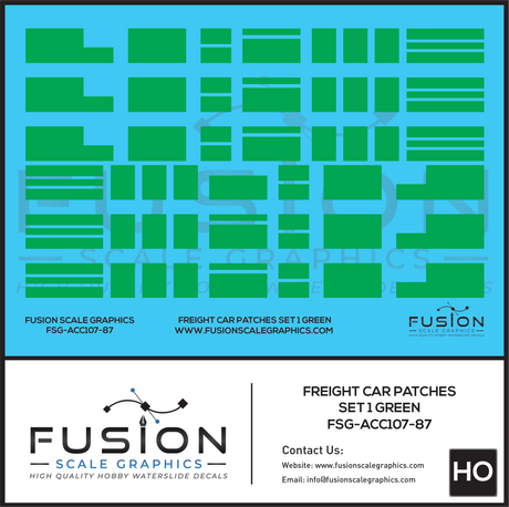 HO Scale Freight Car Patches Set 1 Green Decal Set
