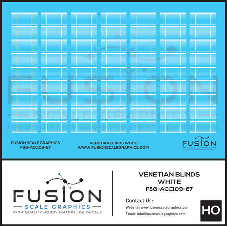 HO Scale White Venetian Blinds for Passenger Cars Decal Set