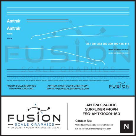 N Scale Amtrak Pacific Surfliner F40PH Locomotive Decal Set
