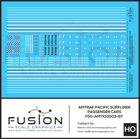 HO Scale Amtrak Pacific Surfliner Passenger Cars Decal Set