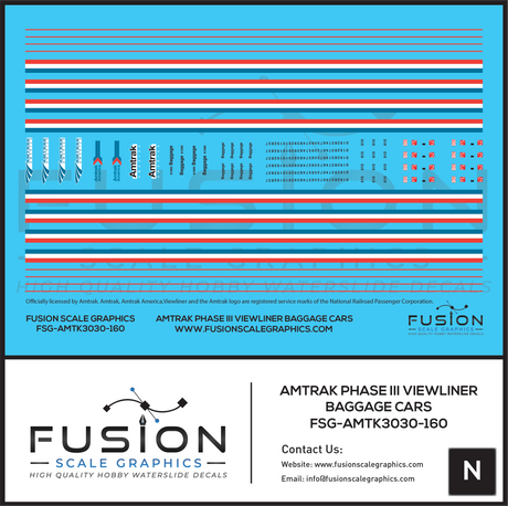 N Scale Amtrak Phase III Viewliner Baggage Car Decal Set