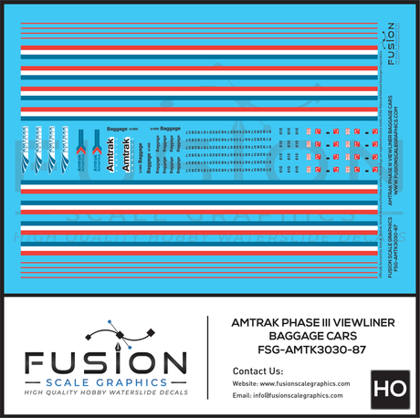 HO Scale Amtrak Phase III Viewliner Baggage Car Decal Set
