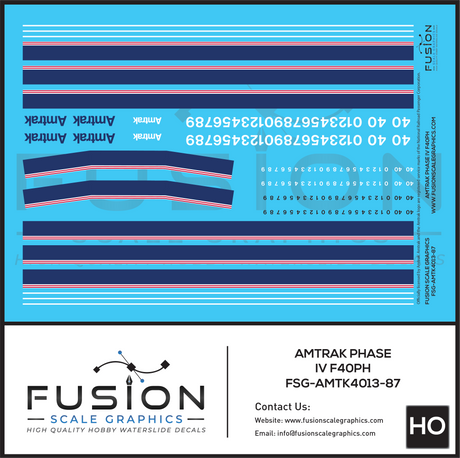 HO Scale Amtrak Phase IV F40PH Locomotive Decal Set