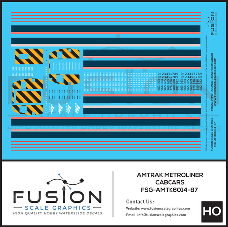 HO Scale Amtrak Phase VI Metroliner Passenger Cabcar Decal Set