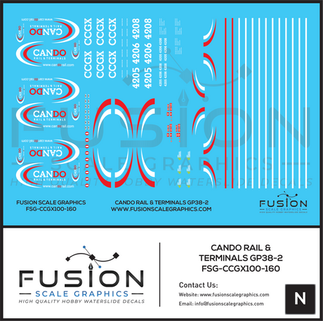 N Scale Cando Rail and Terminals EMD GP38-2 Locomotives Decal Set