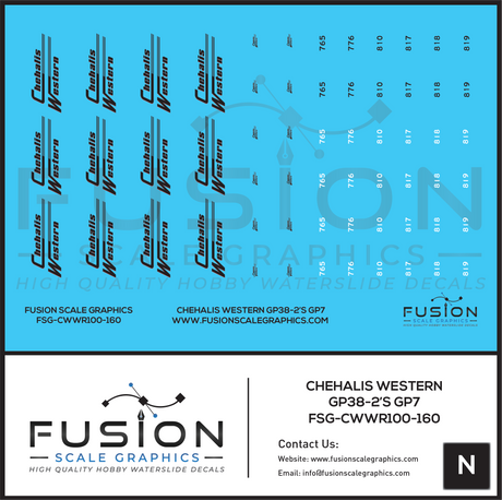 N Scale Chehalis Western EMD GP38-2 and GP7 Locomotives Decal Set