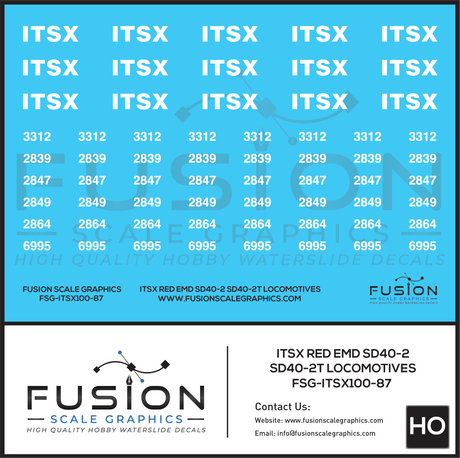 HO Scale ITSX Red EMD SD40-2 / SD40-2T Locomotives Decal Set