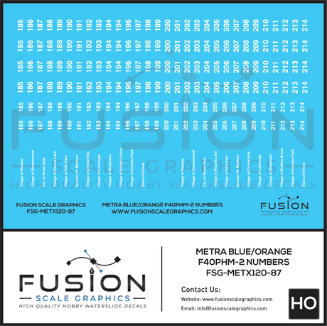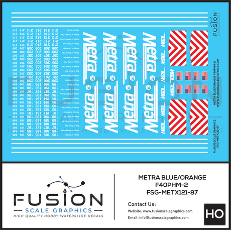 HO Scale Metra EMD F40PHM-2 Blue and Orange Locomotive Numbers Decal Set