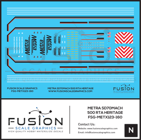 N Scale Metra 500 RTA Heritage SD70MACH Locomotive Decal Set