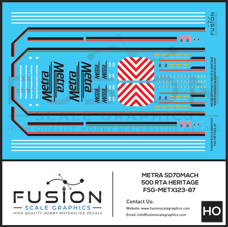 HO Scale Metra 500 RTA Heritage SD70MACH Locomotive Decal Set