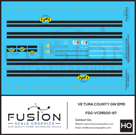HO Scale Ventura County GW Railroad EMD Locomotives Decal Set