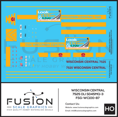 HO Scale Wisconsin Central 7525 OLS SD45MQ-3 Locomotive Decal Set