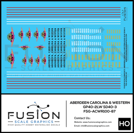 HO Scale Aberdeen Carolina and Western EMD GP40-2WL SD40-3 Locomotives Decal Set