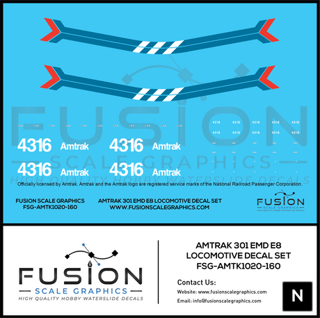 N Scale Amtrak 301 EMD E8 Locomotive Decal Set