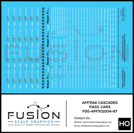HO Scale Amtrak Cascades Passenger Cars Decal Set