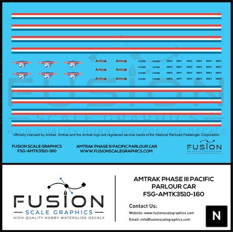 N Scale Amtrak Phase III Pacific Parlour Car Decal Set