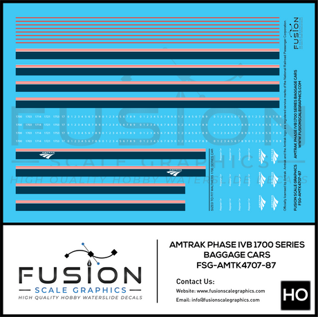 HO Scale Amtrak Phase IVb 1700 Series Baggage Cars Decal Set