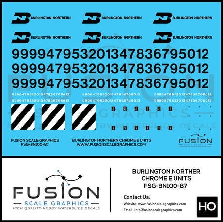 HO Scale Burlington Northern Chrome E8 E9 Locomotive Decal Set