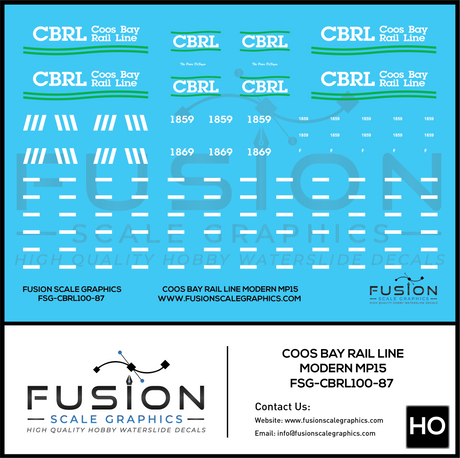HO Scale Coos Bay Rail Line Modern MP15 Locomotive Decal Set