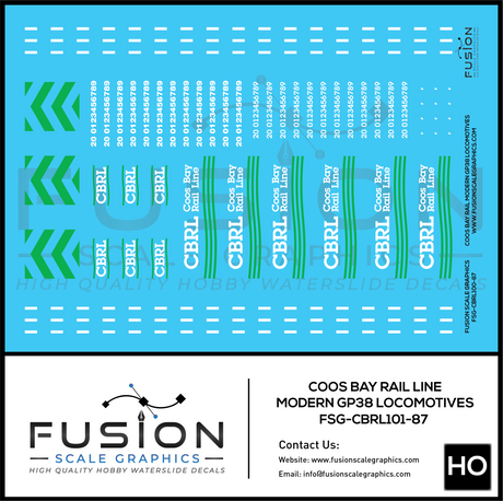 HO Scale Coos Bay Rail Line Modern GP38-2 Locomotive Decal Set