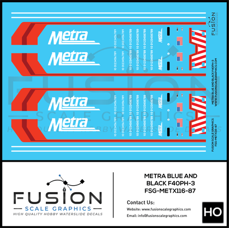 HO Scale Metra F40PH-3 Blue & Black Locomotive Decal Set