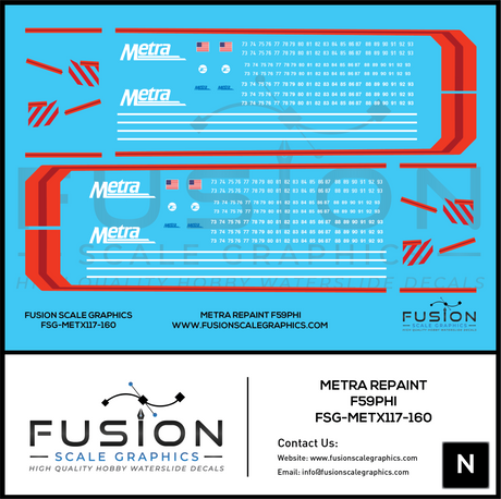N Scale Metra F59PHI Fade Paint Locomotive Decal Set