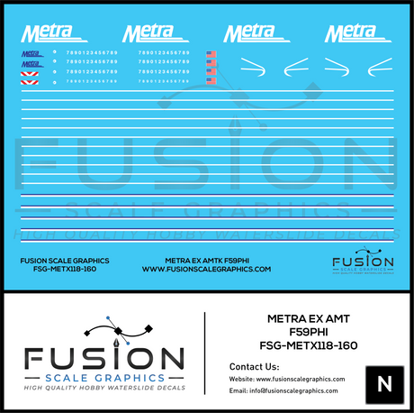 N Scale Metra EX Amtk EMD F59PHI Decal Set