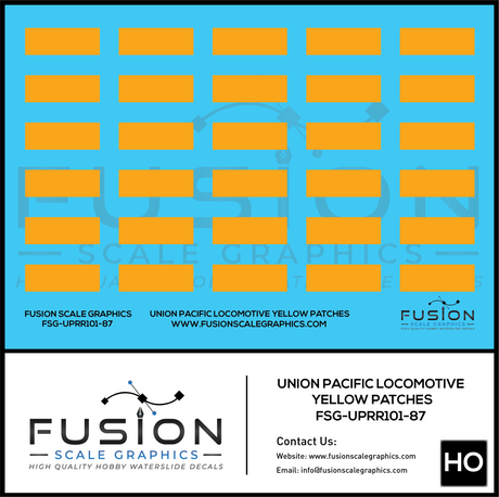 HO Scale Union Pacific Yellow Locomotive Cab Patches Decal Set