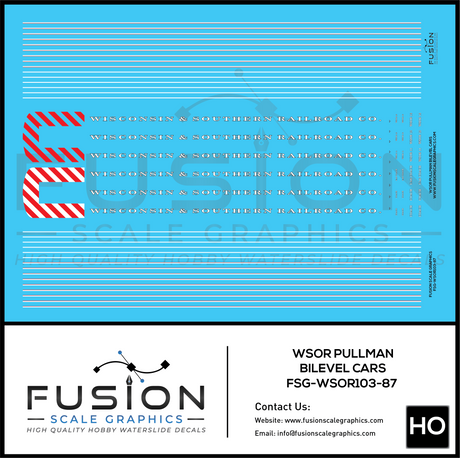 HO Scale Wisconsin & Southern WSOR BiLevel Passenger Cars Decal Set