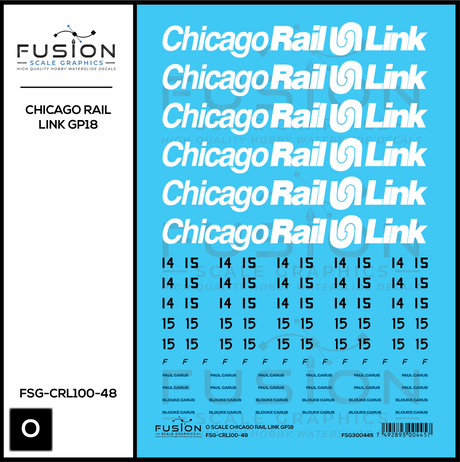 S Scale Chicago Rail Link EMD GP18 14 & 15 Locomotive Decal Set