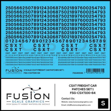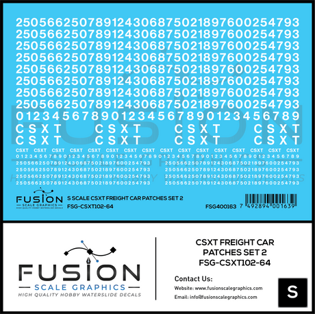 S Scale CSXT Ex Chessie ACF Covered Hopper Number Patching Decal Set