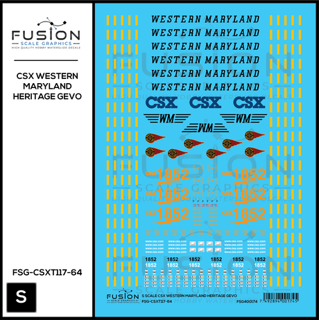 S Scale CSX 1852 W&M Western Maryland Heritage ES44AH Locomotive Decal Set
