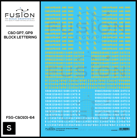 S Scale Chesapeake & Ohio EMD GP7, GP9 Locomotive Decal Set
