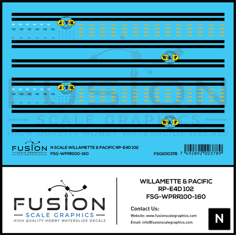 N Scale Willamette & Pacific Railroad 102 RP-E4D Locomotive Decal Set