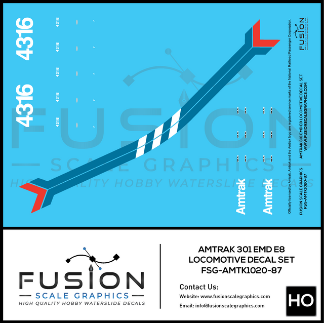 HO Scale Amtrak 301 EMD E8 Locomotive Decal Set may be made to order and will ship within our normal processing time if its not in stock.