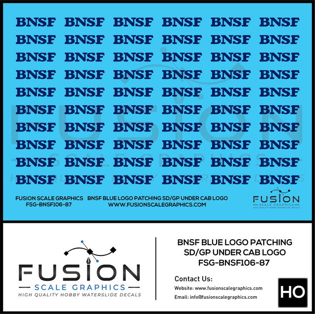 HO Scale BNSF Blue Logo Locomotive Patching Decal Set may be made to order and will ship within our normal processing time if its not in stock.