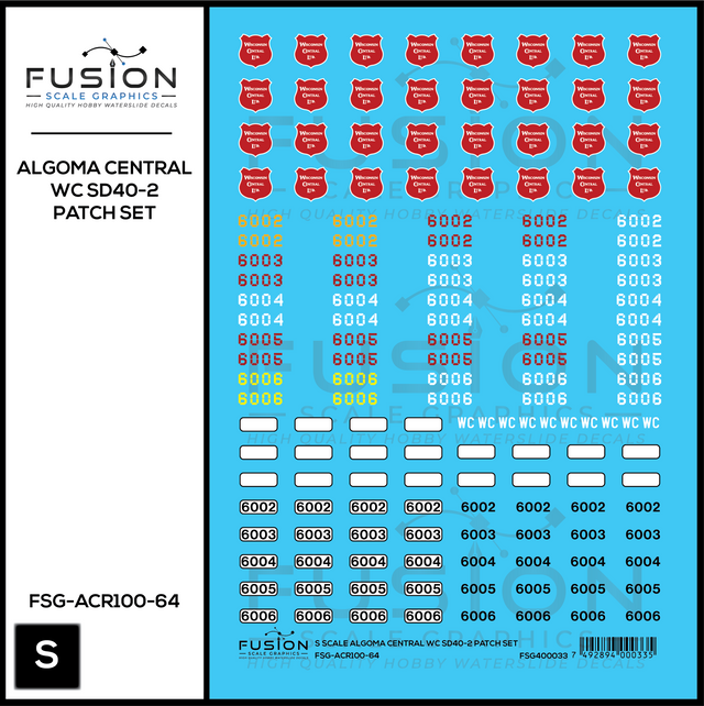 S Scale Wisconsin Central WC ex Algoma Central EMD SD40-2 Locomotive Stencil Patch Decal Set may be made to order and will ship within our normal processing time if its not in stock.