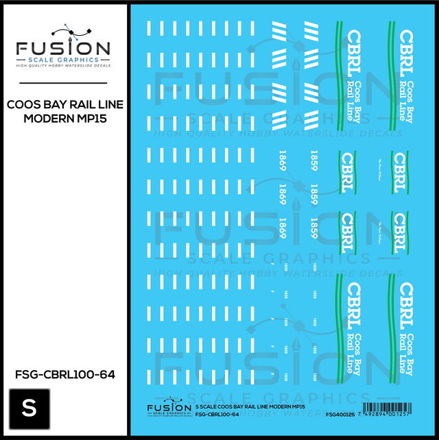S Scale Coos Bay Rail Line Modern MP15 Locomotive Decal Set