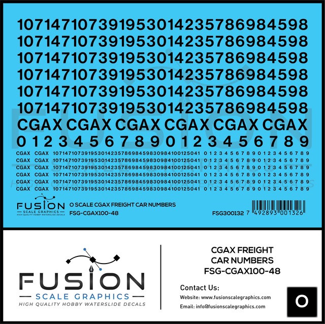 O Scale CGAX Freight Car Numbering Decal Set may be made to order and will ship within our normal processing time if its not in stock.