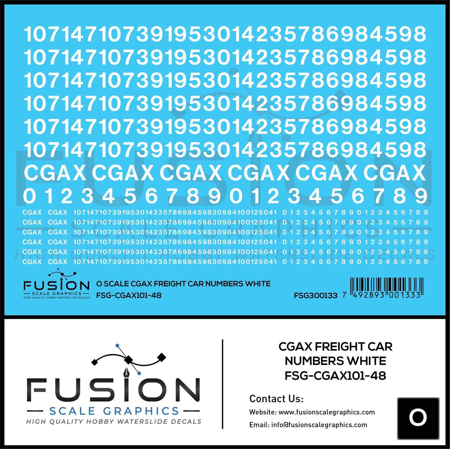 O Scale White CGAX Freight Car Numbering Decal Set may be made to order and will ship within our normal processing time if its not in stock.