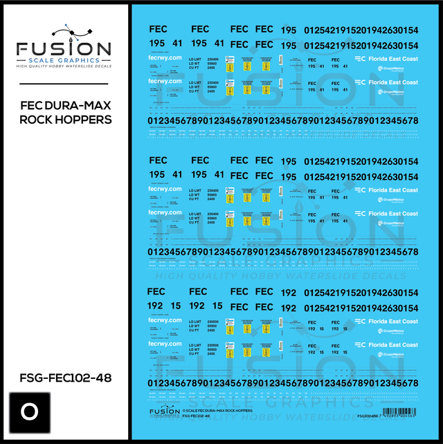 O Scale Florida East Coast Dura-Max Rock Hopper Cars Decal Set may be made to order and will ship within our normal processing time if its not in stock.
