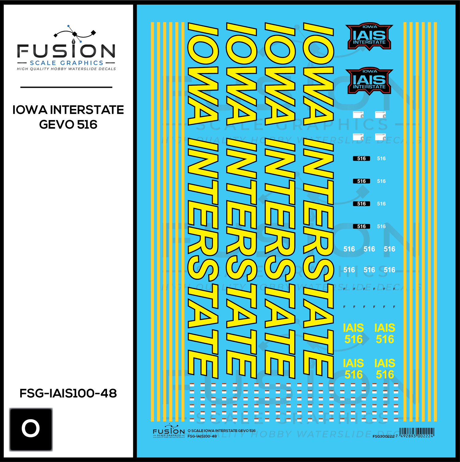 O Scale Iowa Interstate Railroad GEVO 516 Locomotive Decal Set