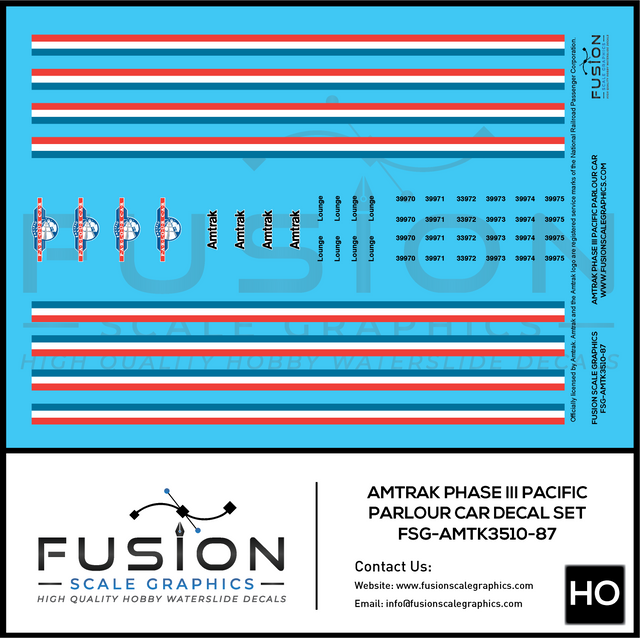 HO Scale Amtrak Phase III Pacific Parlour Car Decal Set may be made to order and will ship within our normal processing time if its not in stock.